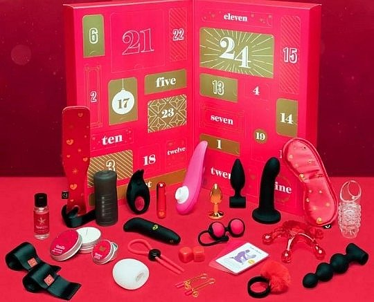 Tento vzrušujúci predvianočný darček obsahuje 24 lákavých sexuálnych pomôcok, ktoré si môžete spoločne s partnerom vychutnať, a je dokonalým spôsobom, ako pomaly odpočítavať dni až do posledného dňa 24. decembra. Vnútri je zmes hračiek vhodných pre penisy, vulvy, konečníky a vagíny, ako sú análne korálky a kegelove guličky.